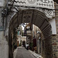 Yemyeşil doğaya sahip küçük ve bakımlı bir köydür. Mastello peyniri, hortakeftedes, loukumades, katsiki ve çipuro gibi yiyecekleri yiyerek tatilinin tadını çıkarmak isteyenler için eşsiz manzaraların izlenebildiği alanlara sahiptir. Adaya gelen ziyaretçileri taş evleri ve Ege Denizi manzarası ile büyüleyen köy, tarihi ve farklı tasarımlarda ki evlerinde konaklama imkanı da sağlamaktadır.